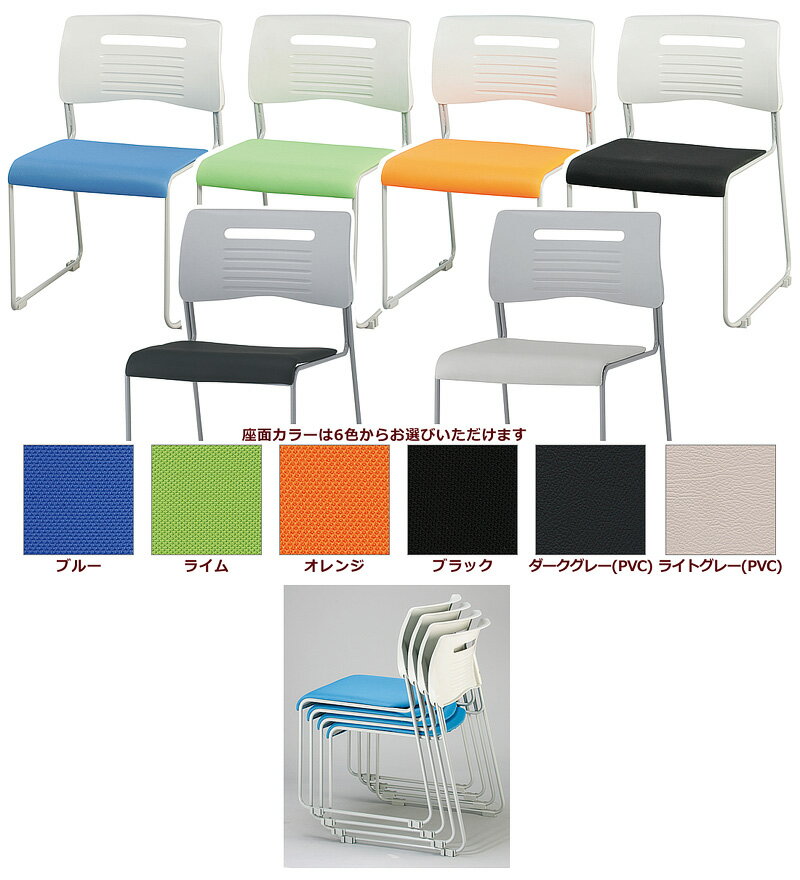 送料無料 新品 「4名様用 ミーティングセット」 幅1000mmテーブル1台+スタッキングチェア4脚 商品名 4人用 会議セット 品番 OPTBT4107-PMC430-SET サイズ テーブル:W1000mm×D700mm×H700mmチェア:W503mm×D528mm×H738mm(SH430mm) カラー テーブル天板:2色よりお選びください ホワイト、ナチュラルチェア座面:6色よりお選びください(同色に限ります) 布張り/ブルー、ライム、オレンジ、ブラック PVC張り/ダークグレー、ライトグレー 仕様 <材質>テーブル: 天板/18mm厚MDF+低圧メラミン エッジ/PVC フレーム・脚/スチール粉体塗装チェア: 背/PP樹脂成型品 座/PP樹脂成型品+ウレタン+ポリエステル布またはPVC 脚/スチール粉体塗装 メーカー希望小売価格 ¥82,200(税別) ★