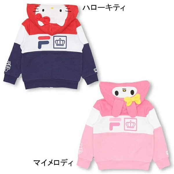 /スポーツブランドFILAとサンリオとの限定コラボジップパーカー!/かぶるだけでキャラに変身できるフード付き!/袖もとでちょこんと読書中のキャラプリントもキュート◎/大好きなキティちゃん&マイメロディにかわいく変身しちゃお♪